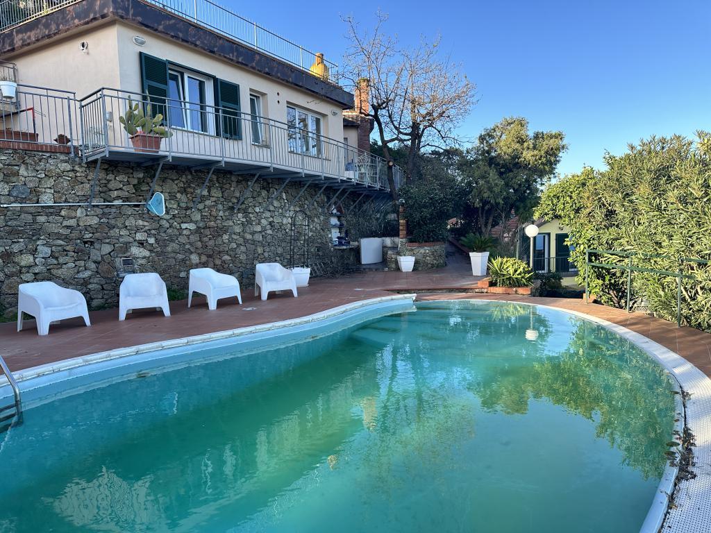 Panoramic Villa with Poiscina for Sale in Bruiciati area near Albissola Marina with dominant and total sea view, independent villa of 90 m2 with equipped external courtyard and swimming pool. Newly built property with type A energy class, consisting of two bedrooms, living room, kitchen, bathroom, terrace and green area planted with orchards. the solar terrace is currently intended for car parking, with access to the street level via an electric gate. bath. Possibility of expansion for another 100 m2 of living space with the purchase of the building index already optioned by the property. There is a feasibility project to be customized if necessary.